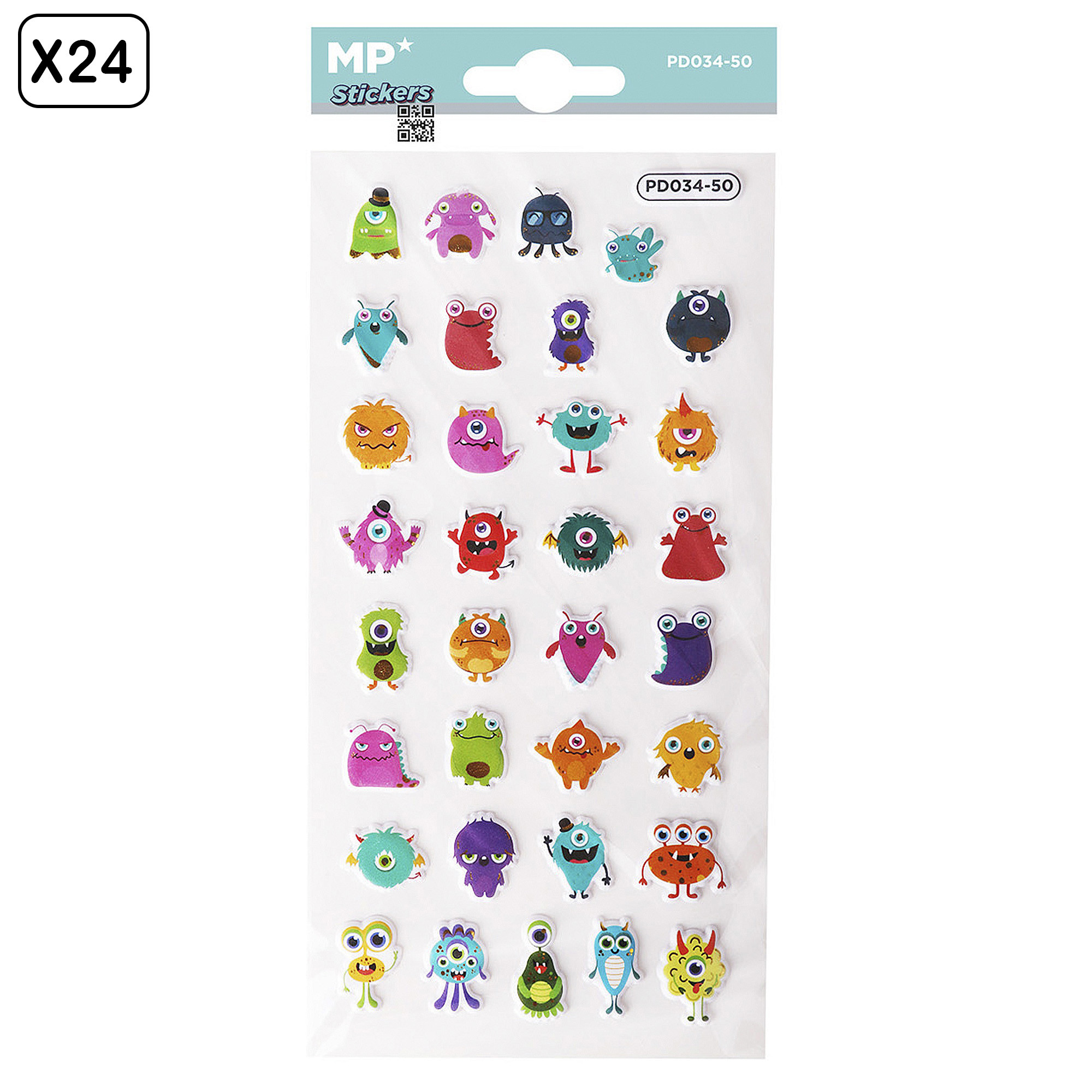 PACK 24 Uds. AUTOCOLLANTS STICKERS EN RELIEF DESIGN MONSTRES