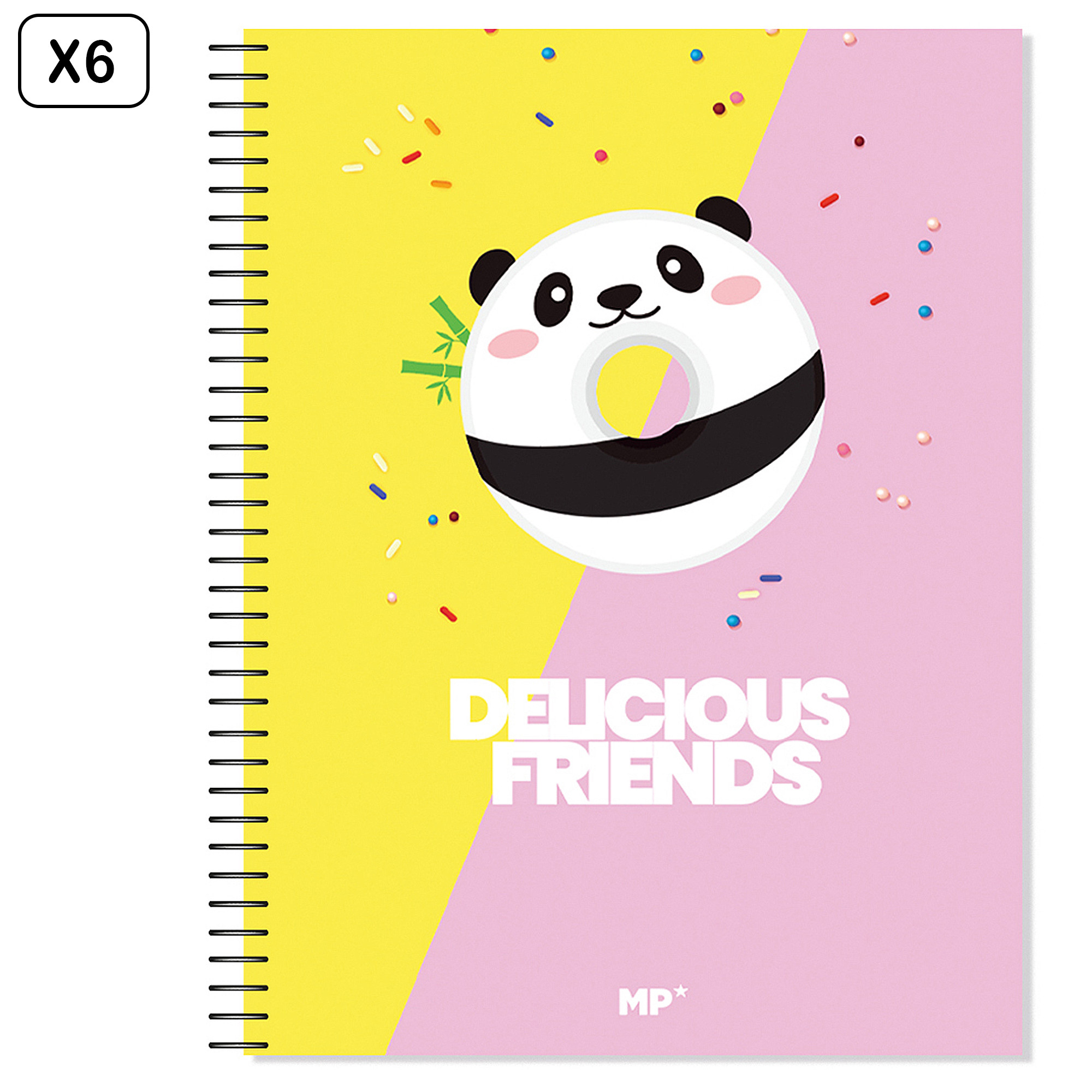 DAM PACK 6 UNITÉS CAHIER EXTRADUR A4 120 FEUILLES CARREAU DESIGN DELICIOUS FRIENDS PANDA 21x29,7x2 Cm. Couleur : Multicolore • Carnet à spirale avec couverture en carton rigide. • 120 feuilles avec micro-perforation pour couper facilement et 4 perforations pour archivage. Papier de 90 g/m² idéal pour que l'encre ne traverse pas. • Ligné : quadrillage de 5 mm. Taille A4+. Dimensions : 231 x 295 mm. Couverture avec design Delicious Friends Panda. Papier, carton.