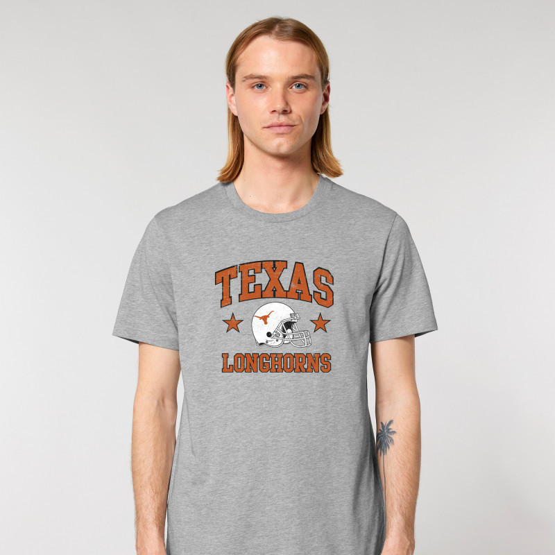 Tshirt Blanc de la marque American Universities. Un cadeau parfait pour Universités Americaines. Le motif Texas Longhorns Red est imprimé en France dans notre atelier à Toulouse sur un Tshirt de qualité très confortable 100% coton peigné issu de l'agriculture biologique enrichi d'un traitement d'enzyme pour un toucher tout doux. Certifié OCS (Organic Content Standard) et Oeko Tex Standard 100. T-shirt de qualité imprimé avec amour en France.