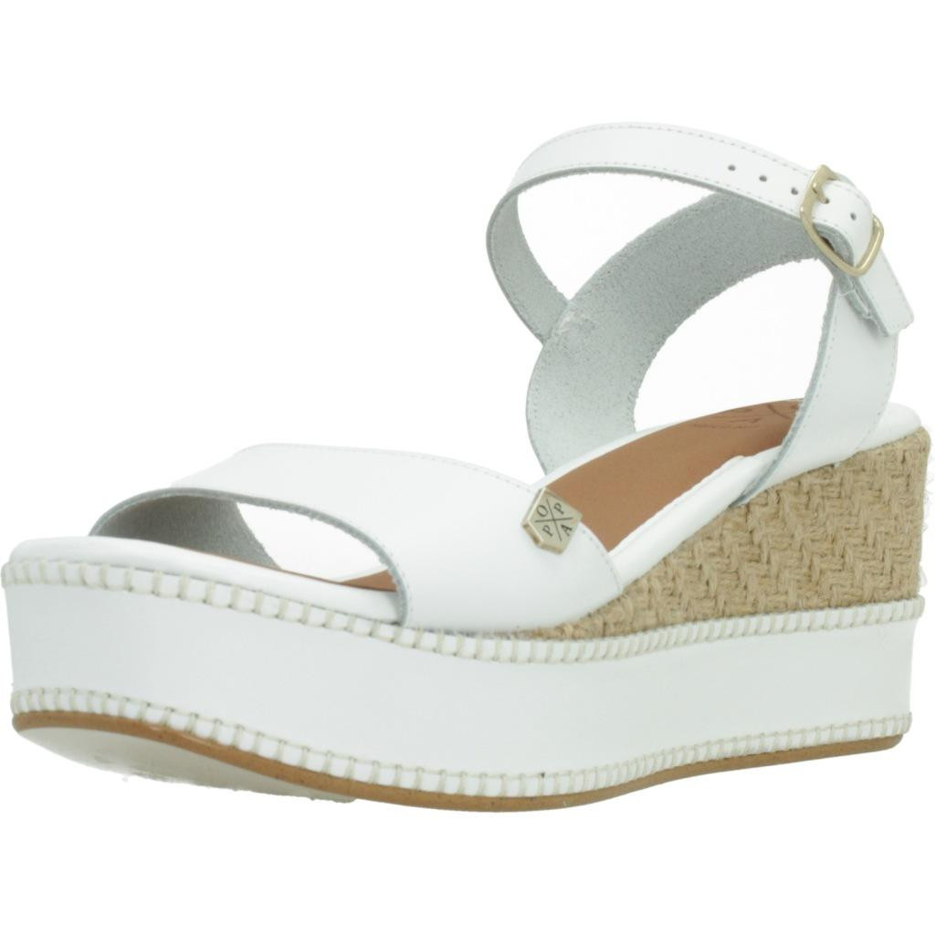 Modèle AKUMAL de marque Popa Blanc Doublure Peau. Extérieur Peau. Type de construction: Coincé. Talon du 9 cm. Fabrique en Espagne.