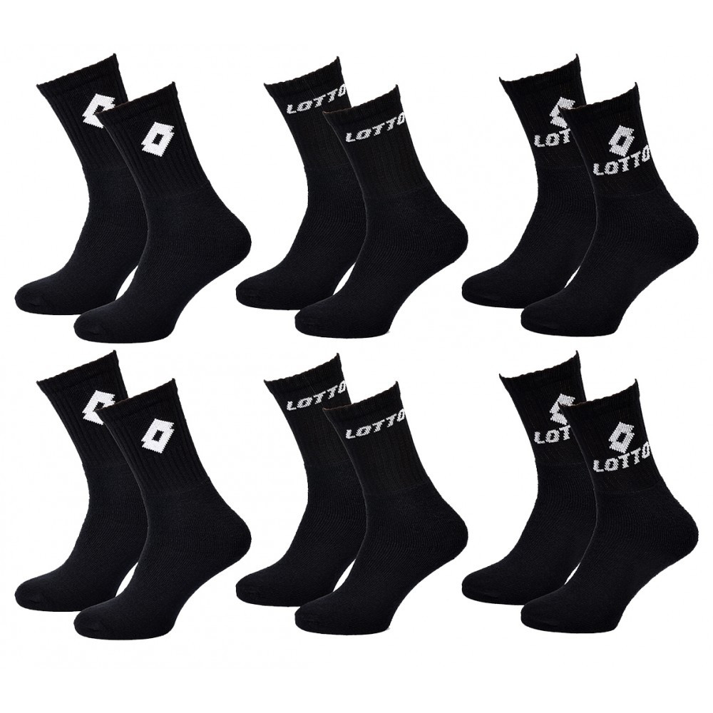 Information sur l'offre : Offrez un cadeau original avec ce Pack de paires de chaussettes LOTTO LOTTO , la marque italienne qui vous met au sport. L'iconique marque sportive LOTTO fut créée en 1973, par une famille du nord de l'Italie; LOTTO inaugure sa première ligne de chaussures de sport, dont le succès permet à LOTTO de devenir un sponsor majeur dans de nombreuses disciplines. Aujourd'hui, LOTTO est un manufacturier reconnu dont la collaboration avec les athlètes internationaux garantit la qualité des produits. Modèle chaussettes TENNIS SPORTSWEAR montant mi mollet appelé CREW pour plus de confort et maintien Couleurs : NOIR Tailles :39/42 43/46 Composition : 61% Coton 37% Polyesther 1% Polyamide 1% elasthane Entretien : Lavable en machine à 30°C