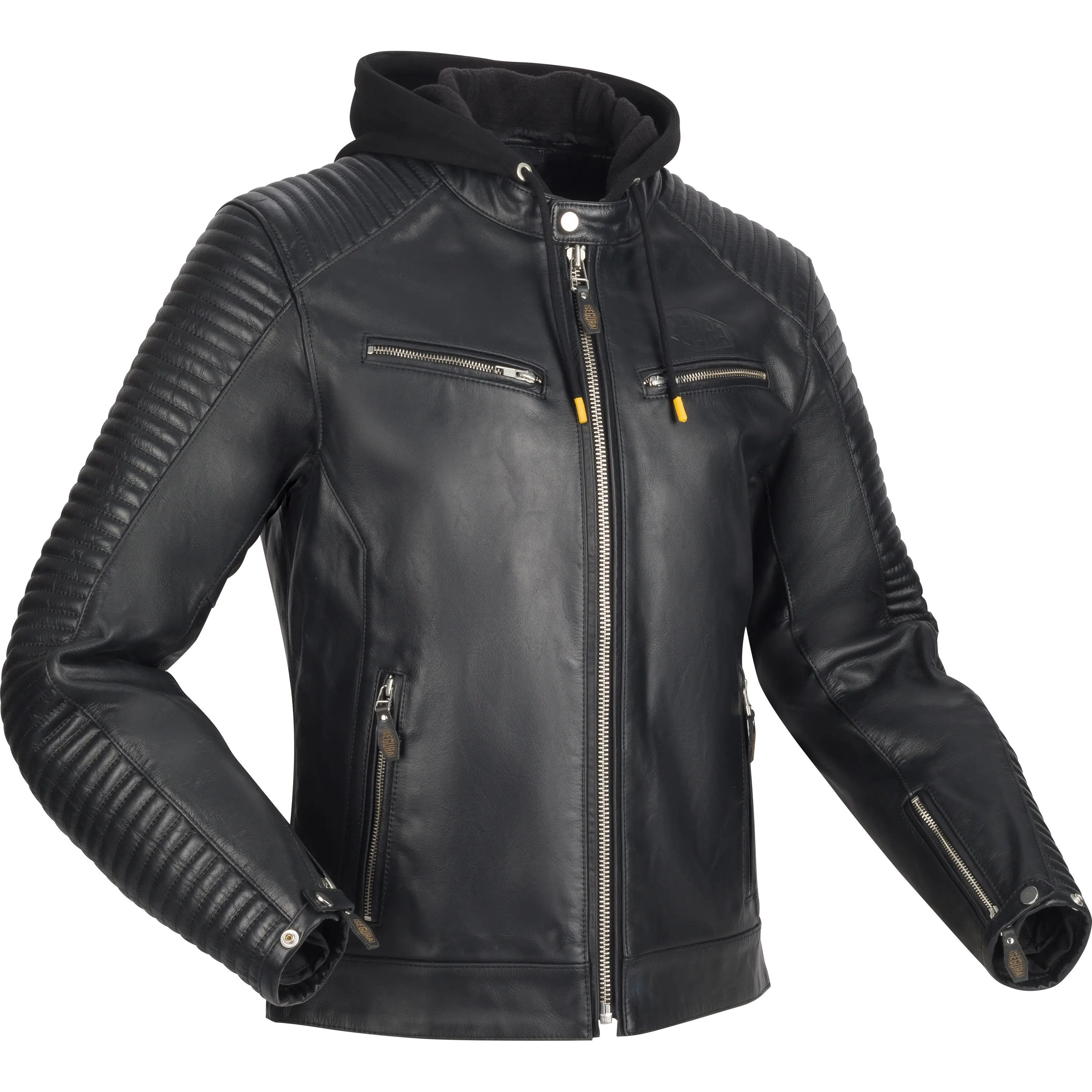 Le DORIAN 2 est un blouson pour homme en cuir de buffle "Buffalo", avec une silhouette roadster contemporaine et haut de gamme. Sa conception Body Fit épouse parfaitement la forme du corps, offrant ainsi une allure élégante et dynamique. Il dispose de quatre poches externes, une poche portefeuille et deux poches intérieures, offrant suffisamment d'espace pour ranger vos effets personnels tout en gardant un design épuré et minimaliste. En termes de sécurité, le DORIAN 2 est équipé de protections aux coudes et aux épaules, toutes deux amovibles et conformes à la norme EN1621-1 Niveau 1. De plus, il dispose d'une poche dorsale CE, offrant la possibilité d'une protection supplémentaire. Les poignets zippés et le serrage à la taille assurent un ajustement parfait, tandis que la poche réglable pour protection du coude vous offre la possibilité d'adapter le blouson à vos besoins spécifiques. La capuche amovible du DORIAN 2 ajoute une touche de confort et de fonctionnalité, vous permettant de vous adapter aux conditions météorologiques changeantes. Le design du DORIAN 2 est une véritable déclaration de style. Les bandes de relief sur les bras sont plus fines et couvrent toute la longueur du bras, créant une silhouette élégante et moderne. Les cordons de la capuche présentent une touche de couleur jaune, ajoutant une note d'originalité. Les surpiqûres ajoutent un niveau supplémentaire de détail. Ce blouson est destiné aux motards passionnés qui recherchent un équipement de haute qualité, qui allie performance, confort et style. Le DORIAN 2 de SEGURA est plus qu'un simple blouson de moto, c'est une véritable affirmation de votre indépendance et de votre liberté sur la route.