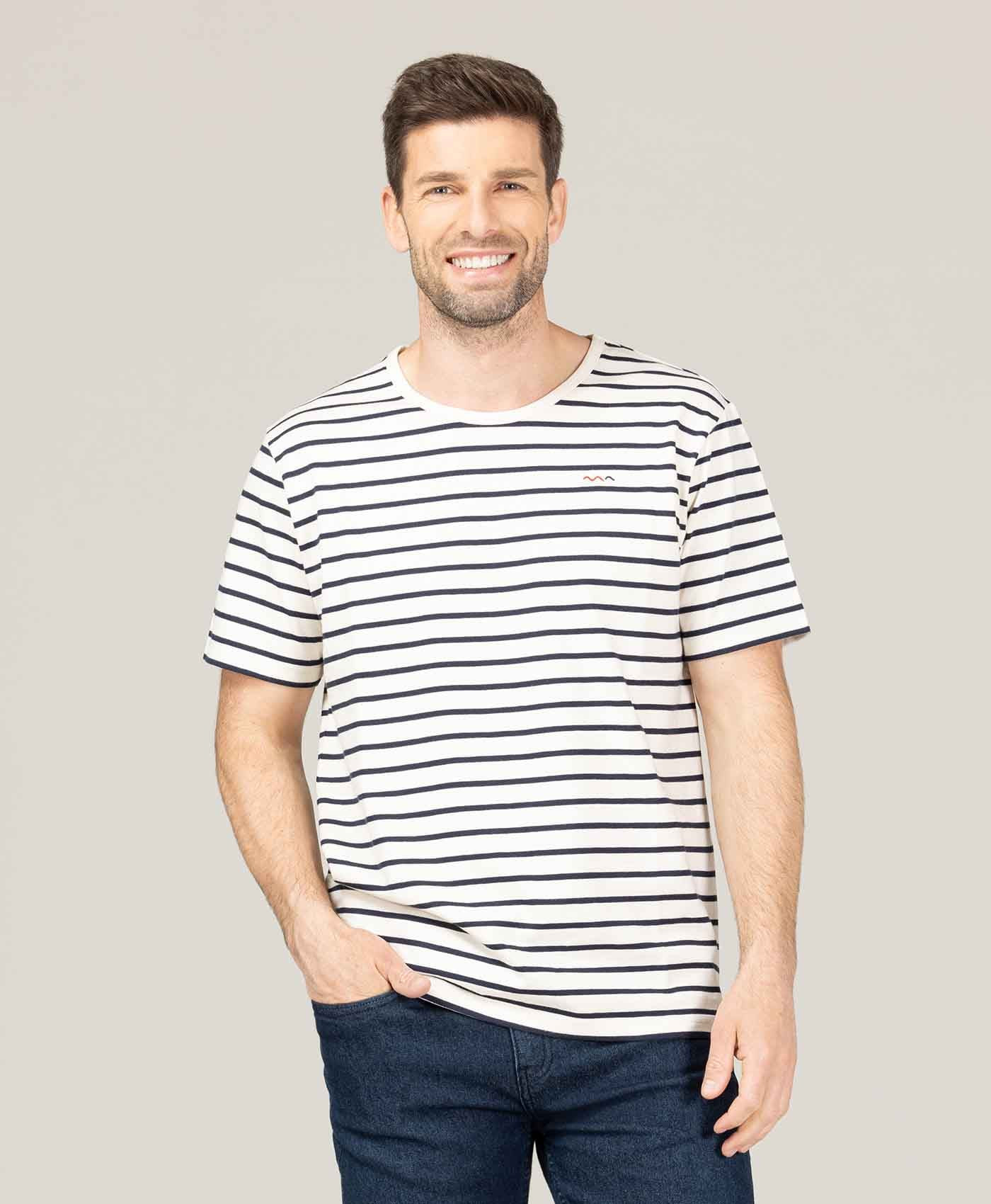 Marinière Homme manches courtes grège rayé bleu marine - Terre de Marins