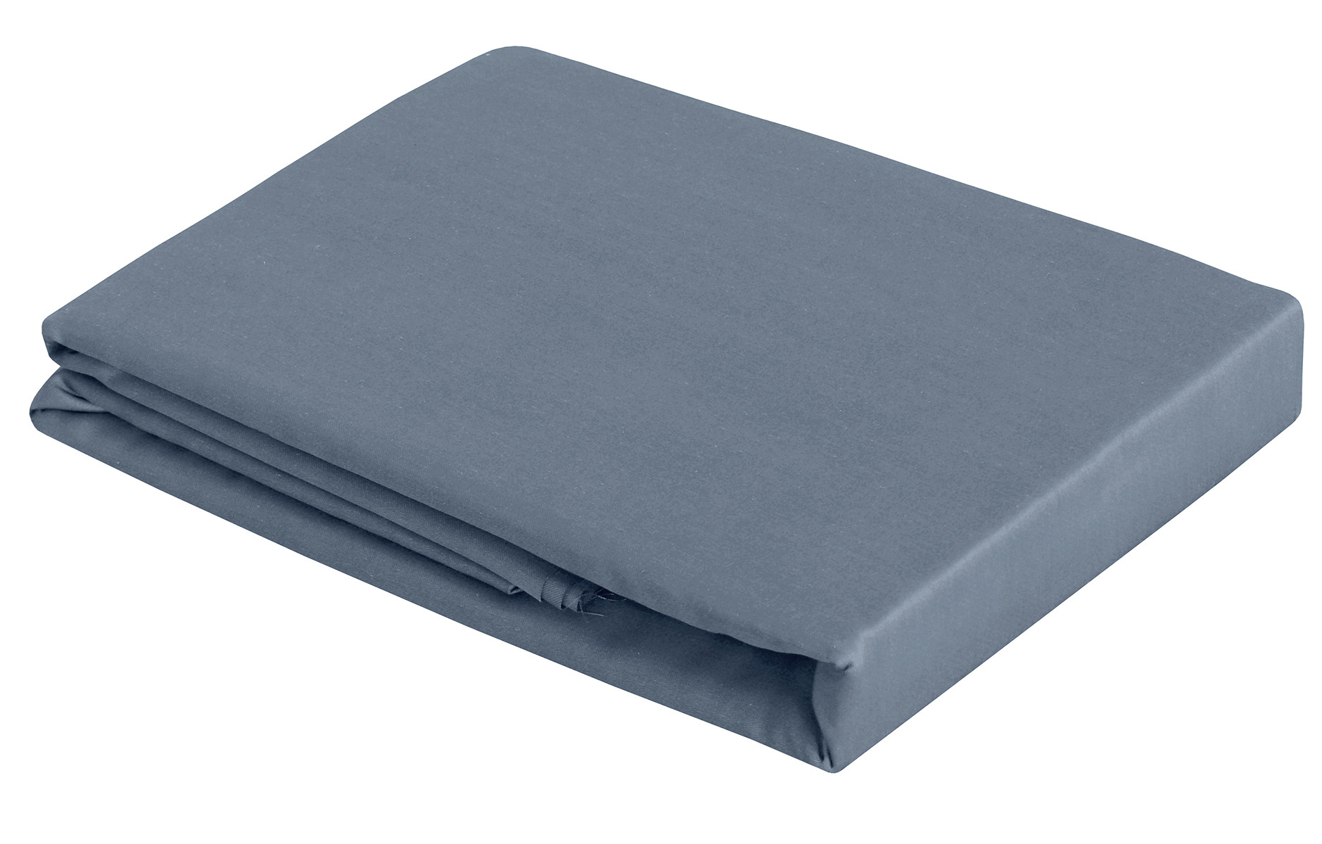 Drap plat 2 personnes 270x300 cm satin de coton bleu