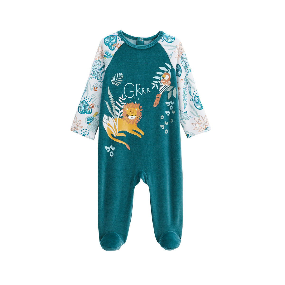 Grrr ! Tout en velours, notre grenouillère ne peut que vous faire craquer ! Avec sa jolie couleur bleue canard et ses manches en contraste écrues, notre petit lionceau attend bébé pour passer de jolies nuits.Pieds antidérapants à partir de la taille 12 mois -inclus-Ouverture par pressions au dosProduit labellisé STANDARD 100 by OEKO-TEX ®(SHKO 039388 TESTEX)Photos non contractuelles : les visuels sont fournis à titre illustratif. Les accessoires visibles ne sont pas inclus, l'offre concerne uniquement les pièces mentionnées dans le titre.
