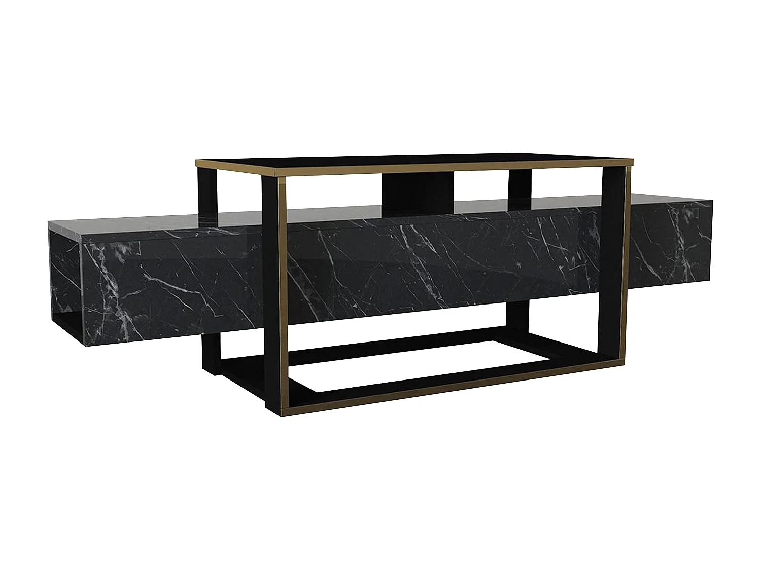 Meuble TV avec 2 niches - Effet marbre noir et doré - COMEBI II