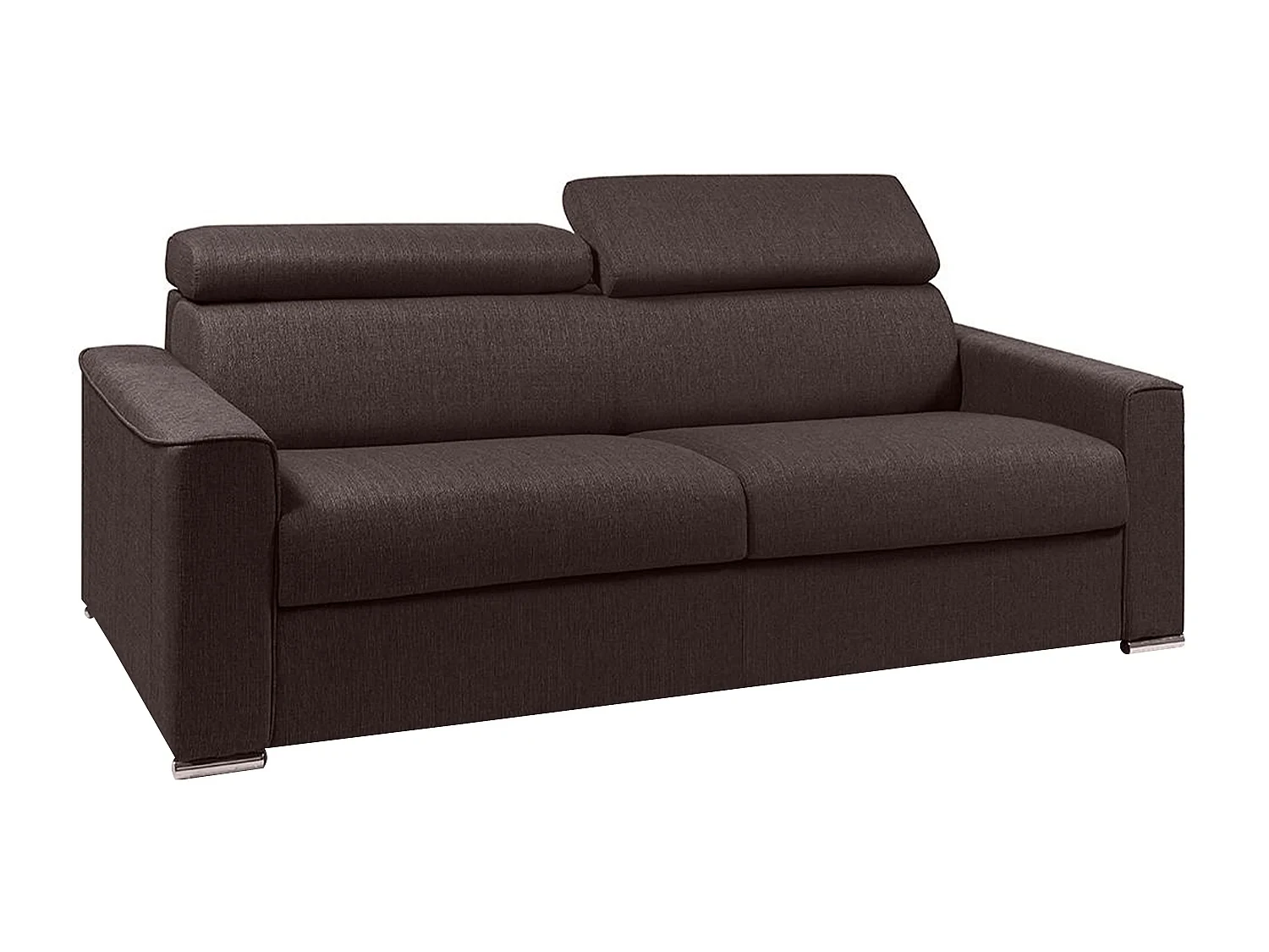 Canapé 4 places convertible express en tissu marron - couchage lattes larges 160 cm - Matelas 14 cm avec mémoire de forme VIZIR