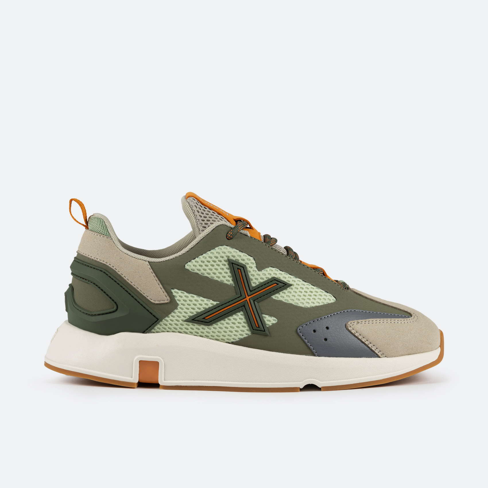 L'alliance parfaite d'un design avant-gardiste et des éléments qui caractérisent la marque. La base en microfibre est associée à un tissu ripstop sur le côté, un tissu ripstop offrant une grande durabilité. Le bout est en daim et le talon est renforcé par un insert en caoutchouc pour un meilleur maintien. La languette est en mesh pour une meilleure respirabilité. La doublure en tissu assure un confort optimal.