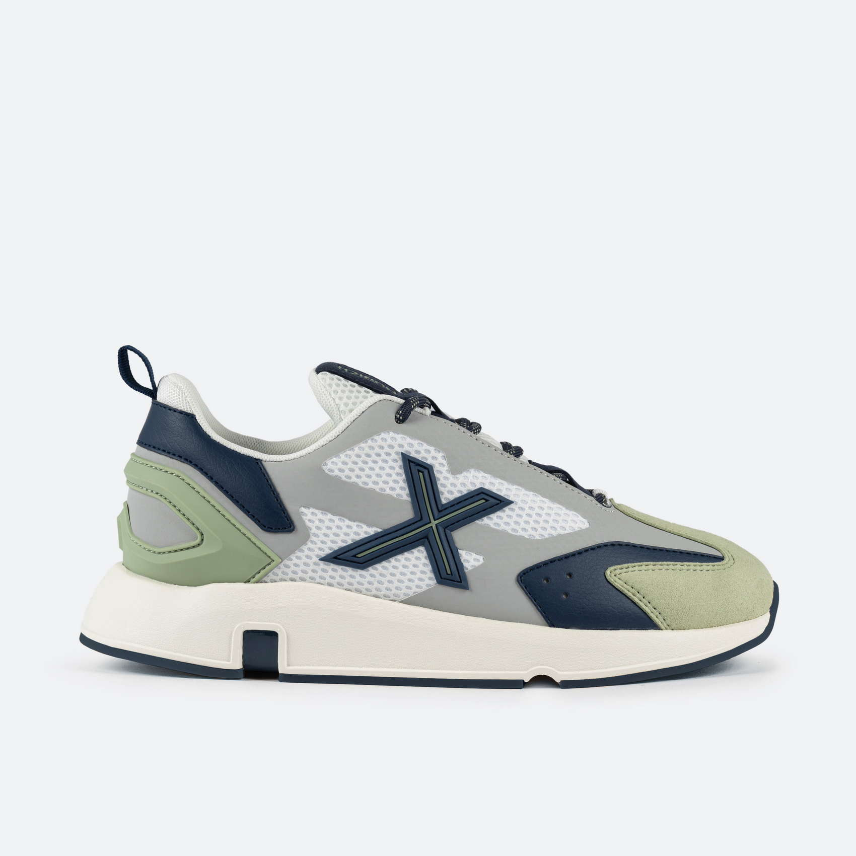 L'alliance parfaite d'un design avant-gardiste et des éléments qui caractérisent la marque. La base en microfibre est associée à un tissu ripstop sur le côté, un tissu ripstop offrant une grande durabilité. Le bout est en daim et le talon est renforcé par un insert en caoutchouc pour un meilleur maintien. La languette est en mesh pour une meilleure respirabilité. La doublure en tissu assure un confort optimal.