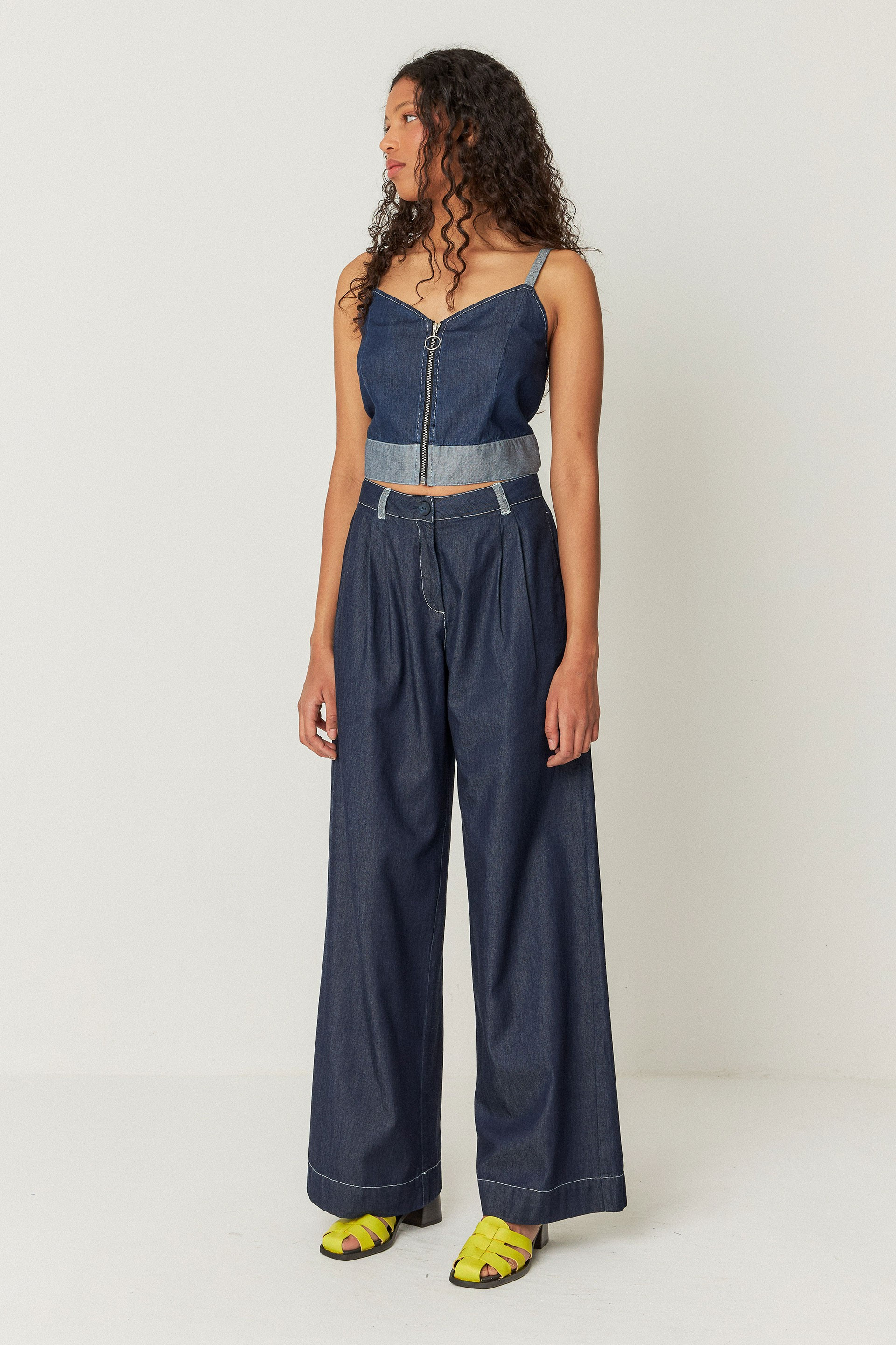 Pantalon droit et ample avec poches latérales et braguette zippée et boutonnée. 100% coton biologique. Lavage à froid, cycle délicat. Repassage à basse température. Ne pas blanchir. Ne pas nettoyer à sec. Ne pas sécher en machine. Laver à l'envers. Laver avec des couleurs similaires. Repasser à l'envers. Ne pas repasser l'imprimé.