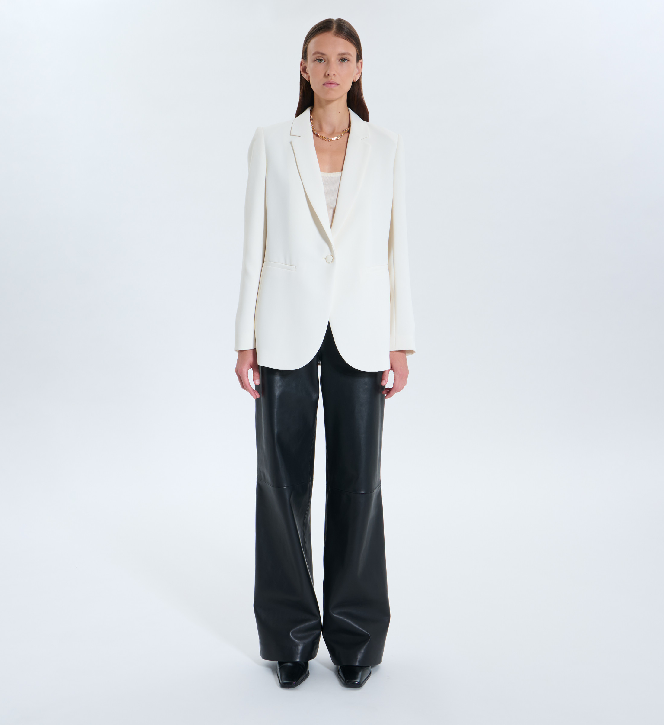 Affirmez votre style avec la veste VICTORINA, un essentiel du vestiaire contemporain. Sa coupe droite structurée, son col tailleur raffiné et son unique bouton ton sur ton rehaussé d’un détail doré en font une pièce forte, à la fois élégante et actuelle. Sa doublure satinée apporte une finition délicate et confortable. À associer avec son pantalon assorti pour une silhouette affirmée et féminine. Veste de tailleur en crêpe Coupe droite Fermeture par un bouton ton sur ton avec détail doré Col tailleur Poches passepoilées Doublure satinée Manches longues Coloris écru