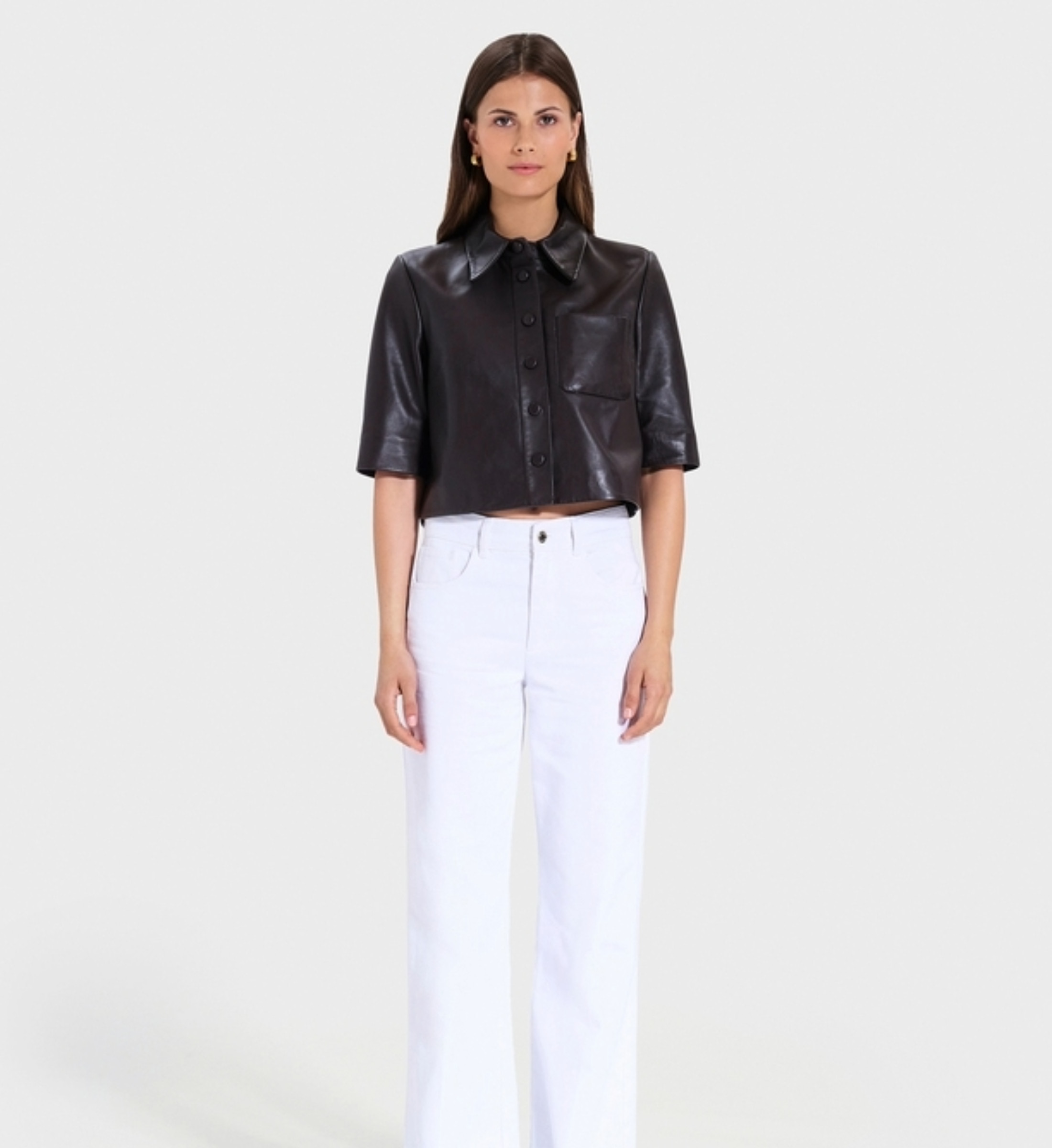 La pièce forte de la saison, la chemise Celina impose son style avec une matière noble en cuir d’agneau. Sa coupe courte et droite lui confère une allure contemporaine, parfaite pour un look urbain et sophistiqué. À associer sans hésiter avec un jean clair pour un total look moderne et décontracté. Chemise courte Coupe droite 100 % cuir d’agneau Ouverture boutonnée Manches courtes Col chemise Poche plaquée devant Coloris chocolat