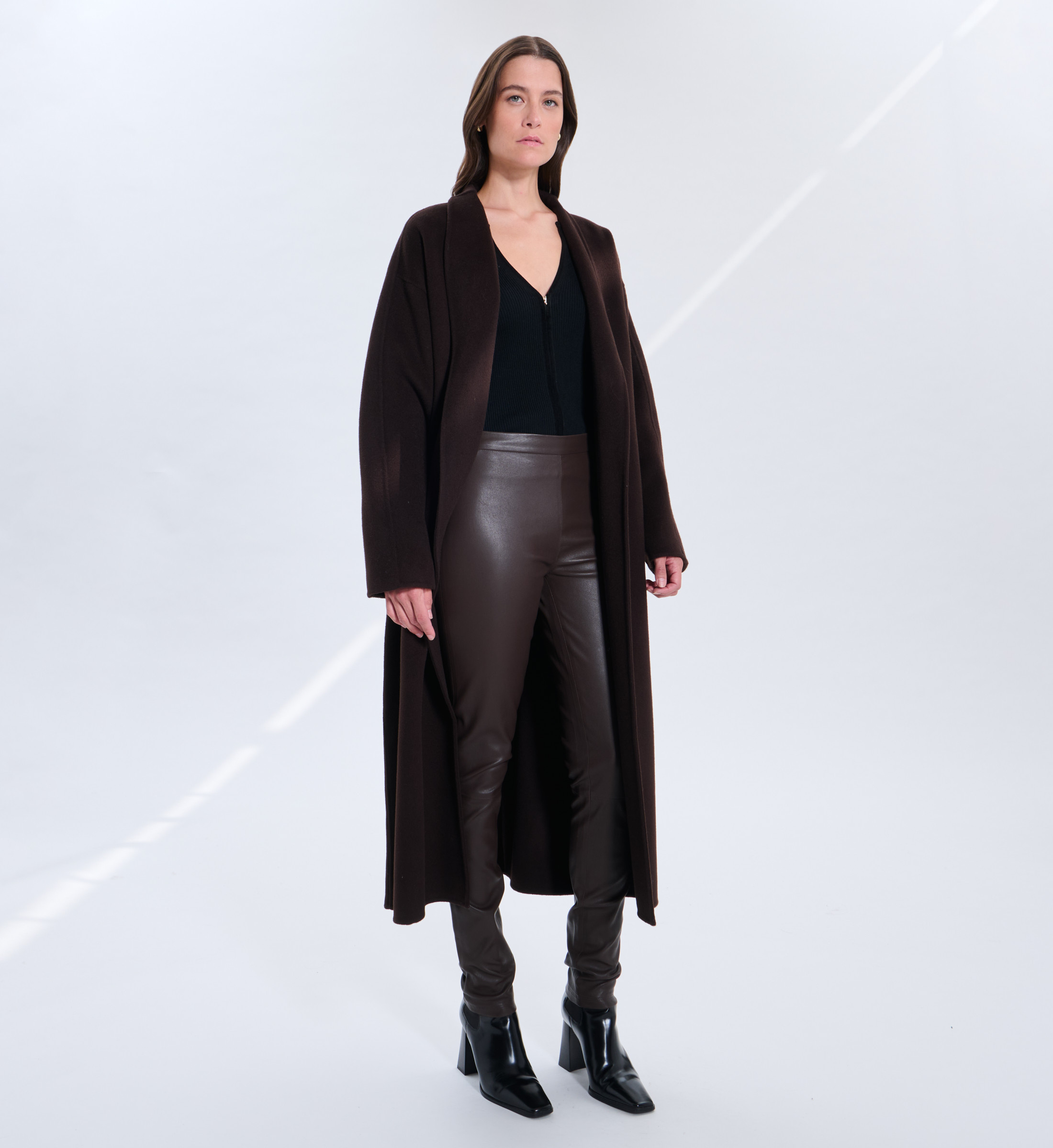 Découvrez la féminité de notre pantalon skinny en cuir noir. Sa coupe ajustée épouse parfaitement vos courbes et le cuir de haute qualité ajoute une touche audacieuse à votre style. Fermeture invisible sur le côté pour une finition élégante et discrète. Pantalon skinny Coupe fit Matière cuir Longueur cheville Fermeture invisible sur le côté Coloris chocolat Longueur 103 cm