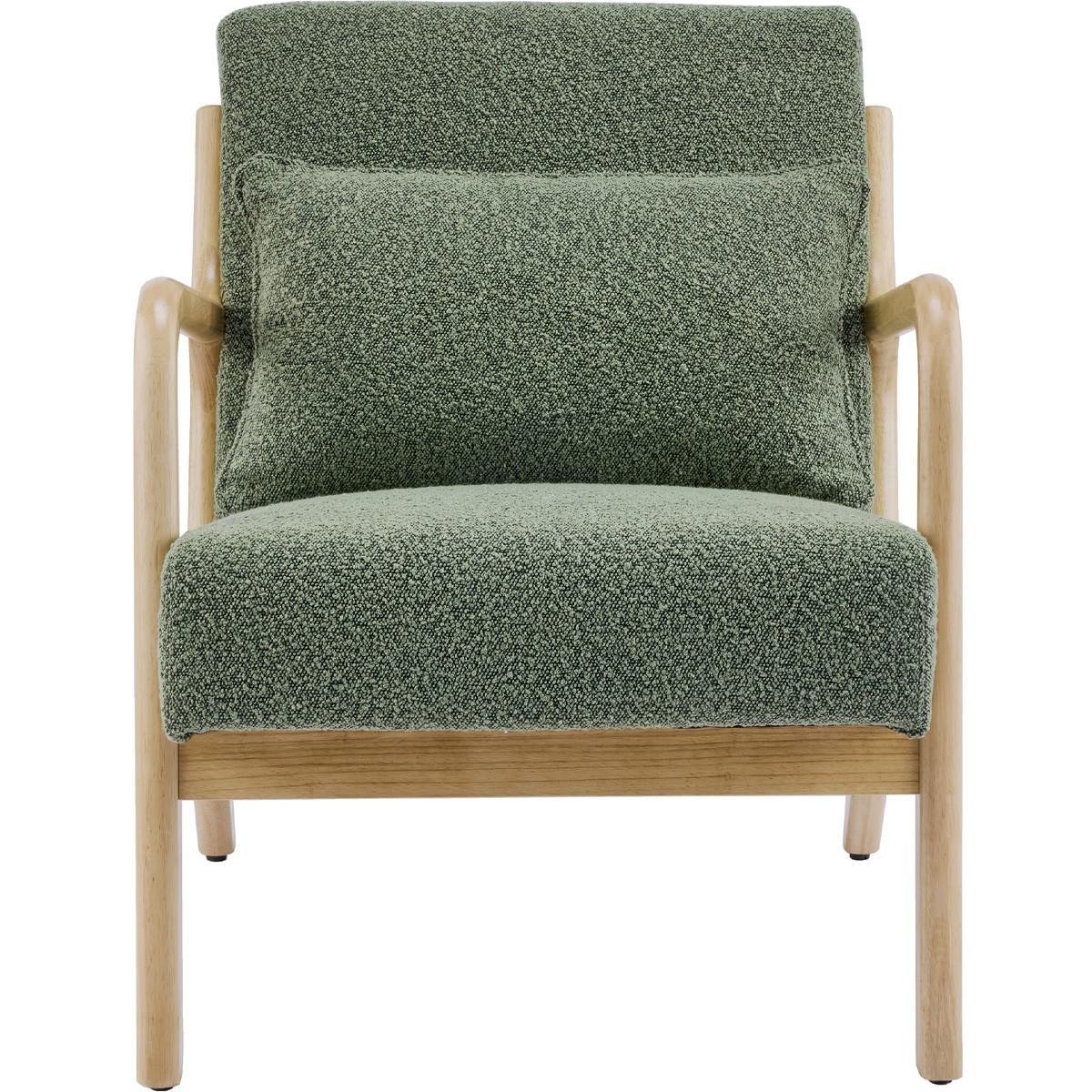 LANNA - Fauteuil en bois et tissu bouclé vert