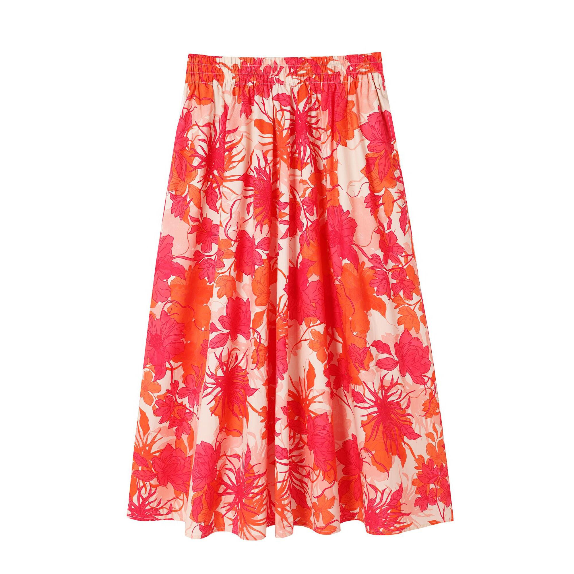 La jupe midi à fleurs est une pièce estivale vibrante, créée avec le confort et le style féminin à l'esprit. Fabriquée en coton léger, elle se distingue par sa coupe évasée qui tombe magnifiquement et ajoute de la légèreté à la silhouette. La ceinture élastique garantit un ajustement parfait sans pression, tandis que les poches pratiques dissimulées dans les coutures latérales ajoutent de la fonctionnalité. Un imprimé floral joyeux aux couleurs vives complète le look, donnant vie à n'importe quelle tenue d'été.