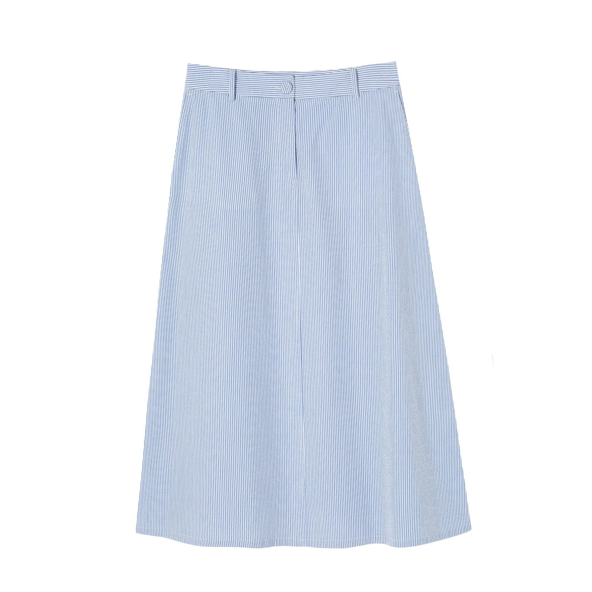 Élégante, décontractée et extrêmement féminine - cette jupe midi évasée à coupe "A" est un classique qui s'associe à de nombreuses tenues. Fabriquée dans un mélange léger avec une forte teneur en coton et des rayures bleues, elle offre un confort tout au long de la journée, et l'absence de doublure lui confère légèreté. Une fermeture à bouton et à glissière ainsi que deux poches pratiques sont des détails qui allient fonctionnalité et style intemporel. Parfaite pour le bureau, les rencontres entre amis ou les sorties du week-end - mettez-la simplement et ressentez-vous spéciale.