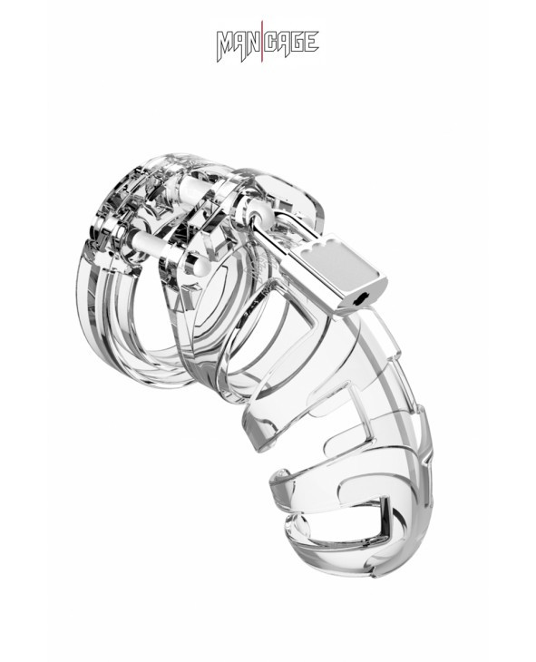 La marque ManCage, spécialiste des cages de chasteté masculine, présente son modèle ManCage n°02, une cage de chasteté transparente, haute qualité, de 9 cm de long, avec un design ajouré qui garde la verge bien visible.