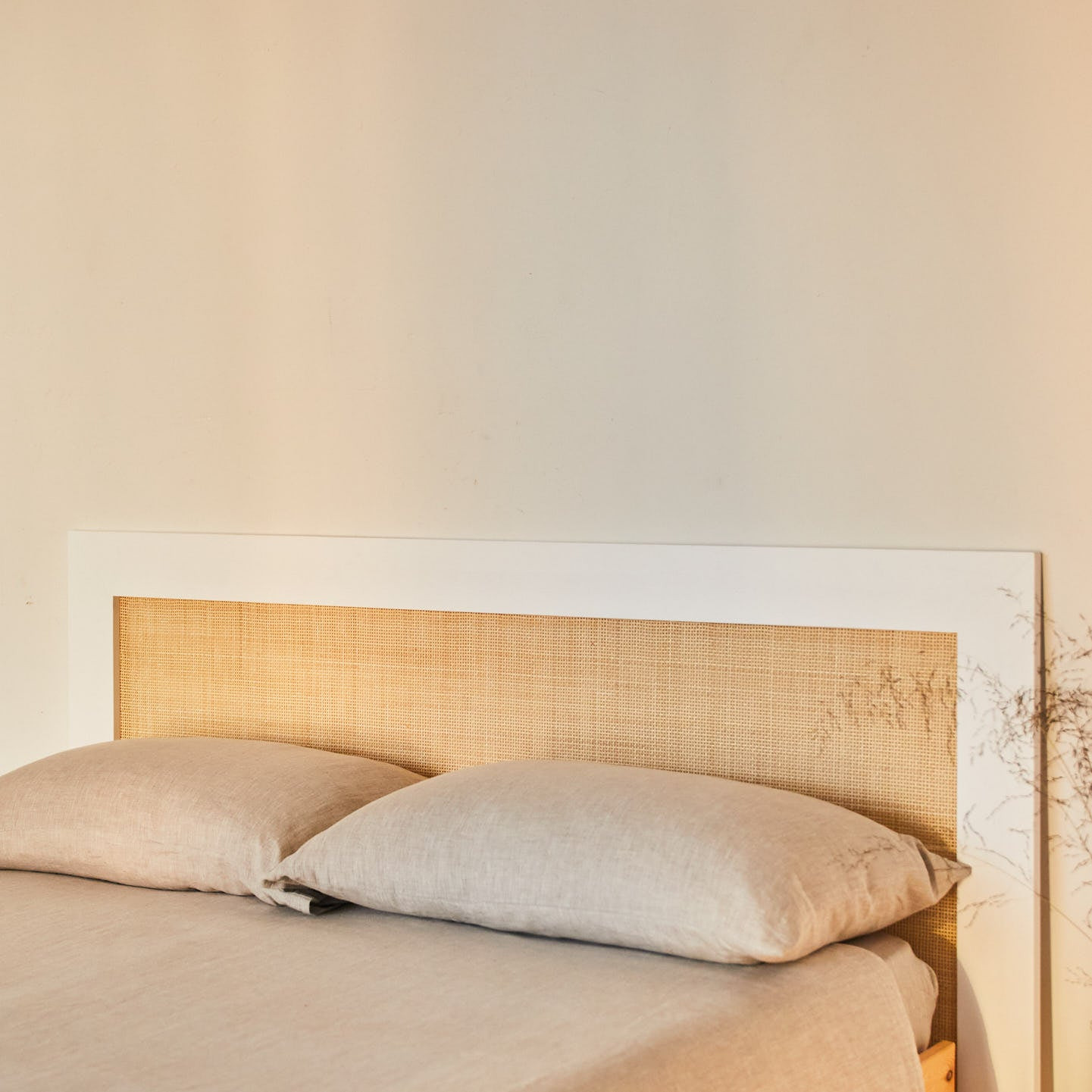 Connaissez-vous le jonc ? C'est une plante herbacée très répandue dans les zones humides comme les abords des rivières, des lacs et des zones humides. Bien qu'il soit généralement utilisé pour la fabrication de paniers, nos artisans ont osé créer cette magnifique tête de lit qui apportera fraîcheur et essence naturelle à votre intérieur. La structure est complétée par un cadre en lattes de sapin, issu de forêts gérées durablement.
