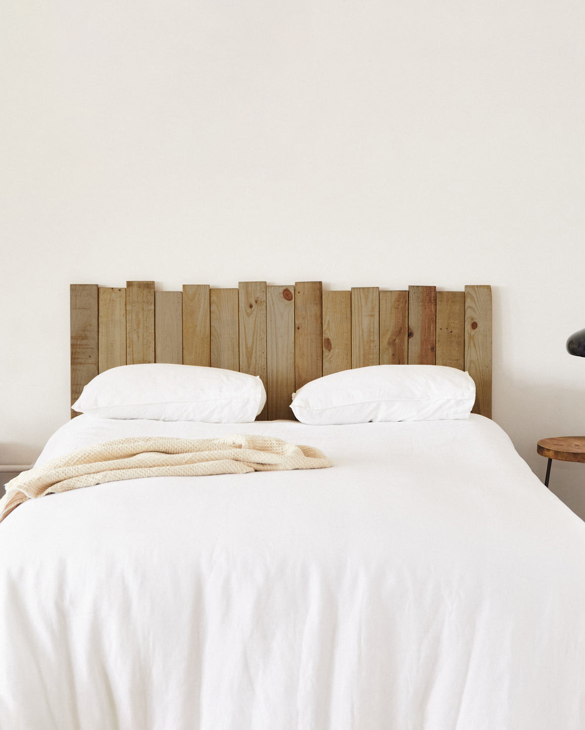 Tout comme notre tête de lit Dakari, Elenu est fabriquée à la main avec des lattes de bois, mais cette fois-ci, le bois est 100 % recyclé. L'industrie du meuble de bureau finit par jeter la majeure partie du bois qu'elle produit, et chez Hannun, nous nous efforçons de lui donner une seconde vie, conformément à notre politique zéro déchet. Vous adorerez l'aspect rustique de sa finition en bois de récupération ! Disponible en quatre tailles pour s'adapter à différents types de lits. La tête de lit Elenu est fabriquée à la main par l'équipe d'artisans de Dani dans leur atelier de La Roca del Vallès (Barcelone). Dimensions : lit de 180 cm (20 lattes) : 190 cm de large x 1,9 cm de profondeur x 100 cm de haut / 18,5 kg. Matériaux : sapin de récupération. Finition du bois : bois de récupération.