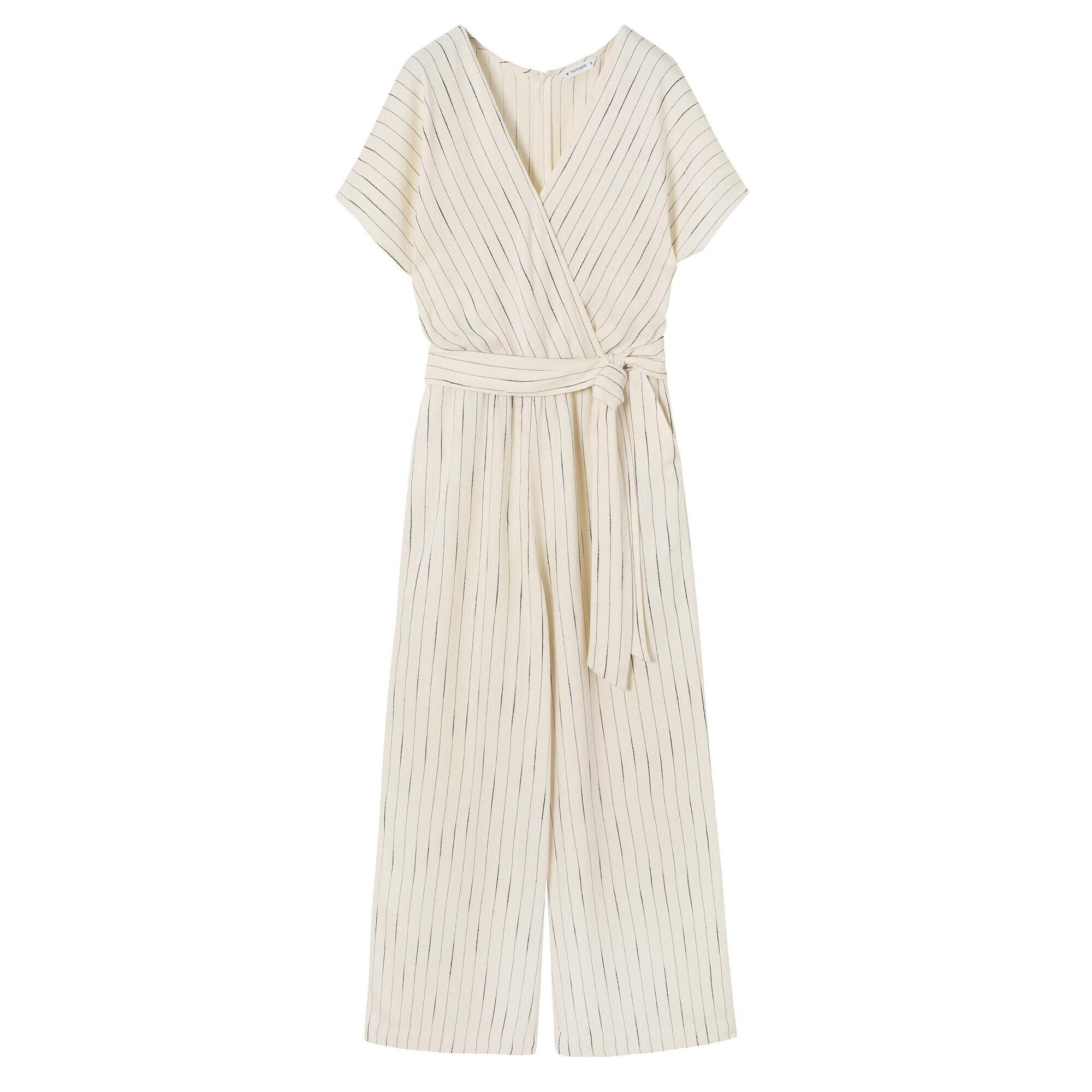 Stylée, confortable et faite pour les journées d'été - cette combinaison en un mélange aéré de viscose, lin et coton est la combinaison parfaite d'élégance décontractée et féminine. Les rayures verticales amincissent optiquement la silhouette, tandis que les jambes larges et la taille élastiquée garantissent une liberté de mouvement tout au long de la journée. Le haut en enveloppe avec un décolleté en V expose joliment le cou, tandis que les manches courtes kimono ajoutent de la légèreté. Le look global est complété par une ceinture qui souligne la taille et ajoute de la proportion à la silhouette.