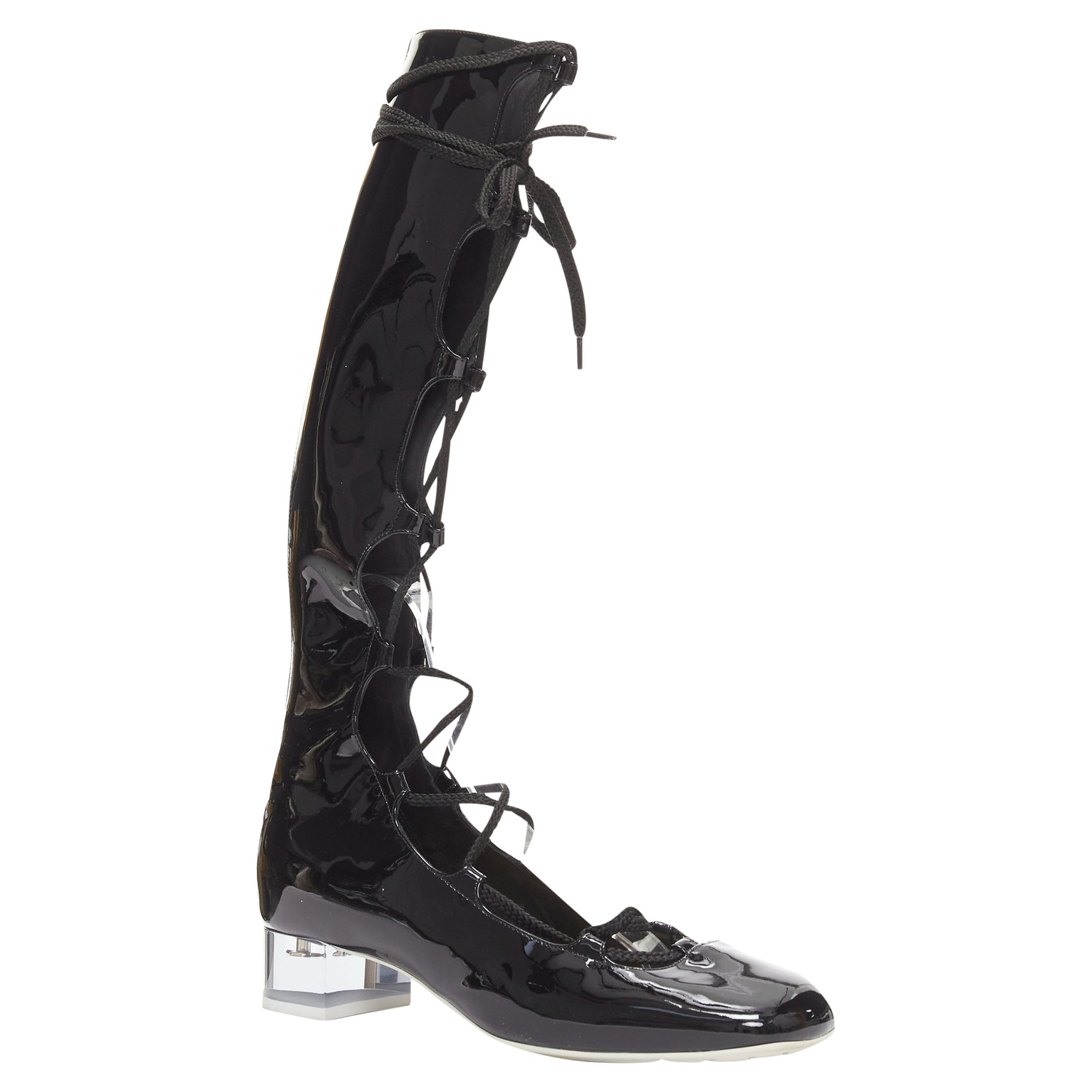 Ballerines DIOR Diorarty à talon étoile argenté en Lucite et vernis noir, petit talon, EU38,5. Référence : AAWC/A00952. Marque : Dior. Modèle : Diorarty. Matière : Cuir. Couleur : Noir, Transparent. Motif : Étoile. Fermeture : Zip. Doublure : Cuir noir. Détails : Lacets avec zip au dos. Fabriqué en : Italie. État : Très bon état. Cet article d'occasion est en très bon état. Veuillez consulter la galerie d'images pour un contrôle complet. Des marques d'usure apparaissent naturellement sur les bottes en cuir. Tailles : Taille du créateur : EU38,5. Référence : EU38,5 / US8,5 / UK5,5 / JP26. Dimensions :