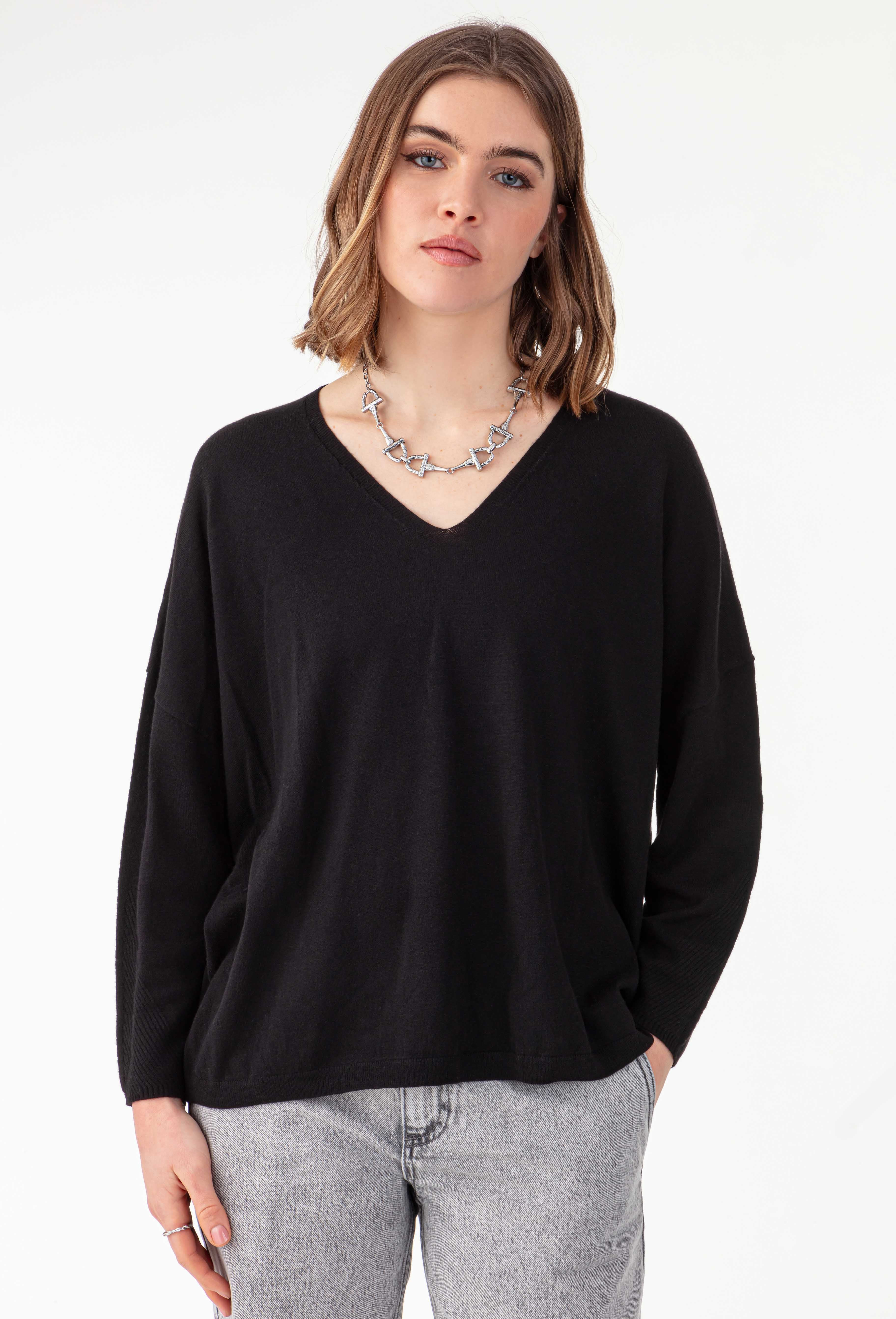 - Pull effet boxy en maille grain de riz noir